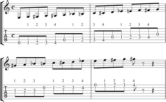 Practice the above scale slowly at first, exaggerating the movements with all of your fingers. Always use a metronome and slowly speed the tempo up, until you reach a point where you are making mistakes. That tempo marking is your saturation point. Memorize or write the marking down and see if you can beat it in your next practice session.